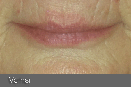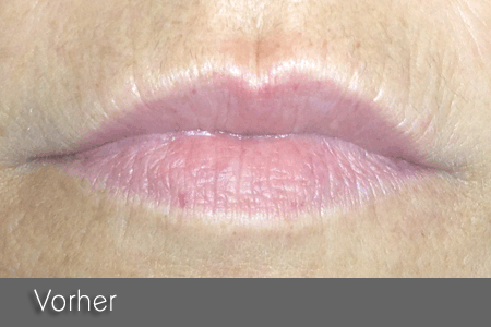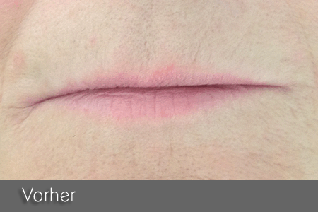 Lippen vor der Behandlung Unsere Kundin wünscht sich eine volle und symmetrische Lippe mit einer perfekten Lippenkontur. Hier wurde eine Neumodellierung mit Vollschattierung empfohlen, also der Ausgleich der unsymmetrischen Lippenkontur, sowie eine natürlich wirkende Vergrößerung der Lippen. |